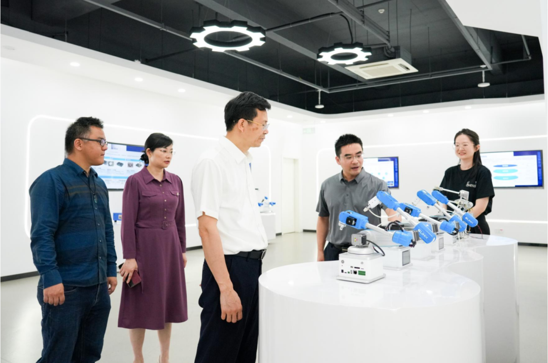 在隨后的座談交流中,雙方圍繞人形機器人的技術突破、行業發展趨勢及產業鏈構建等核心議題展開深入探討。致公黨湖南省委副主委、長沙市委主委黃鋒高度認可企業在人形機器人領域的布局,并勉勵企業把握發展機遇,持續深化技術攻關,積極開拓多元化應用場景。致公黨長沙市委會副主委、長沙市雨花經開區管委會主任易靜、致公黨長沙市委會參政議政專委會主任王弘毅等共同參與調研指導。